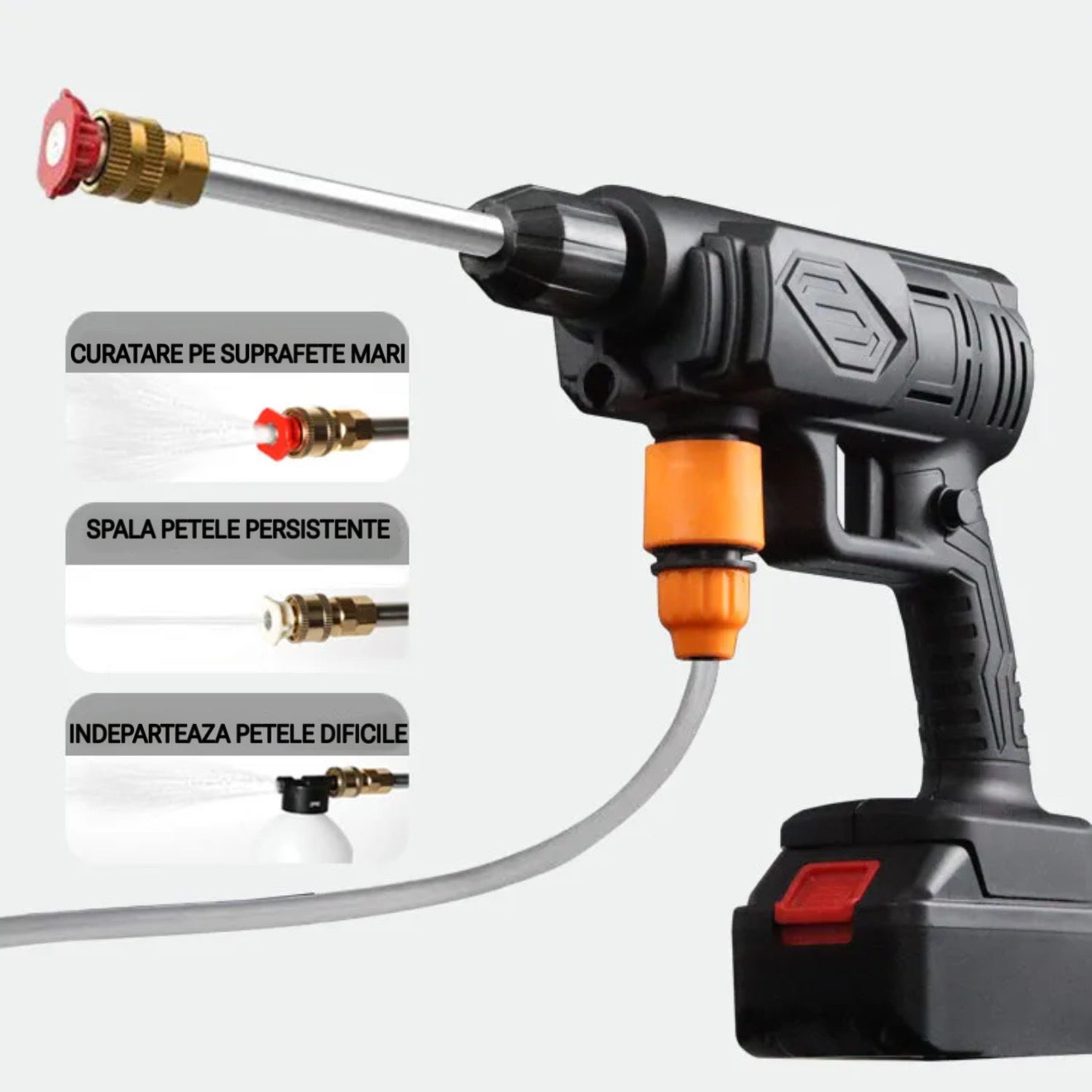 ✅ Rezervor pentru solutie de spalat inclus – ideal pentru masina, terase, mobilier de gradina