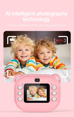 Aparat foto copii cu imprimare termica, ecran IPS 2.4”, rezolutie 10MP, video 1080P, jocuri incluse, card TF pana la 64GB, baterie 1200mAh