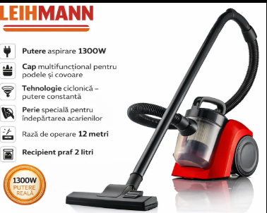 Aspirator fără Sac LEIHMANN 1300W – Curățenie Rapidă, Fără Complicații