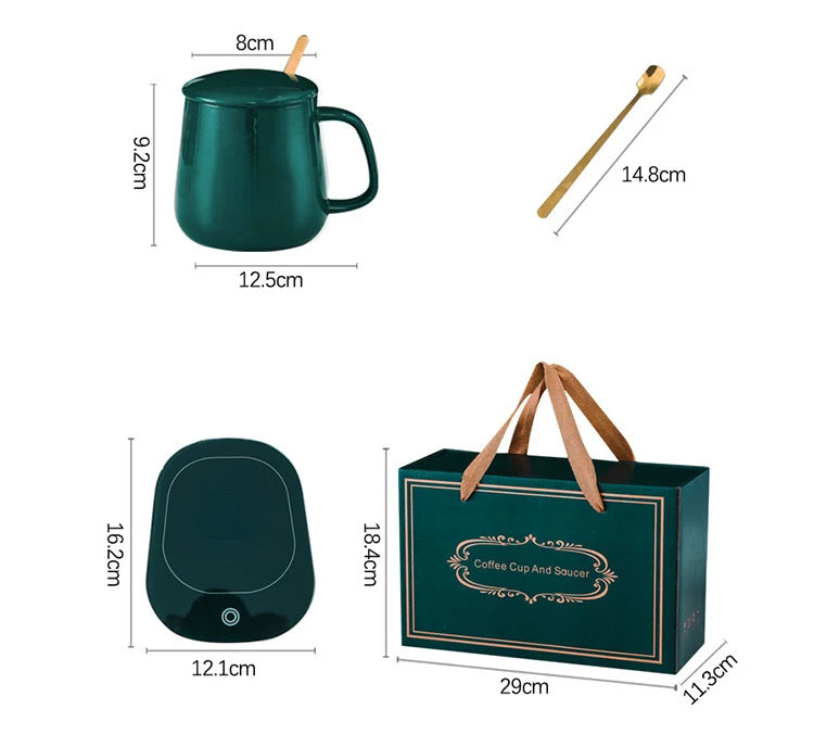 Aceasta cana din ceramica cu incalzitor este ideala pentru cei care isi doresc bauturi mereu calde si aromate. Padul de incalzire functioneaza prin 220V si mentine lichidul la o temperatura constanta de 55°C, astfel incat sa iti poti savura bautura preferata in orice moment al zilei. Cana are o capacitate de 400 ml, suficienta pentru cafea, ceai sau ciocolata calda, iar designul elegant o face potrivita atat pentru birou, cat si pentru acasa. Setul contine cana, capacul, lingurita si incalzitorul USB, tot ce ai nevoie pentru o experienta confortabila si practica. Este usor de curatat si se poate spala in masina de spalat vase. Reprezinta de asemenea un cadou inspirat si util pentru orice ocazie. Specificatii produs: