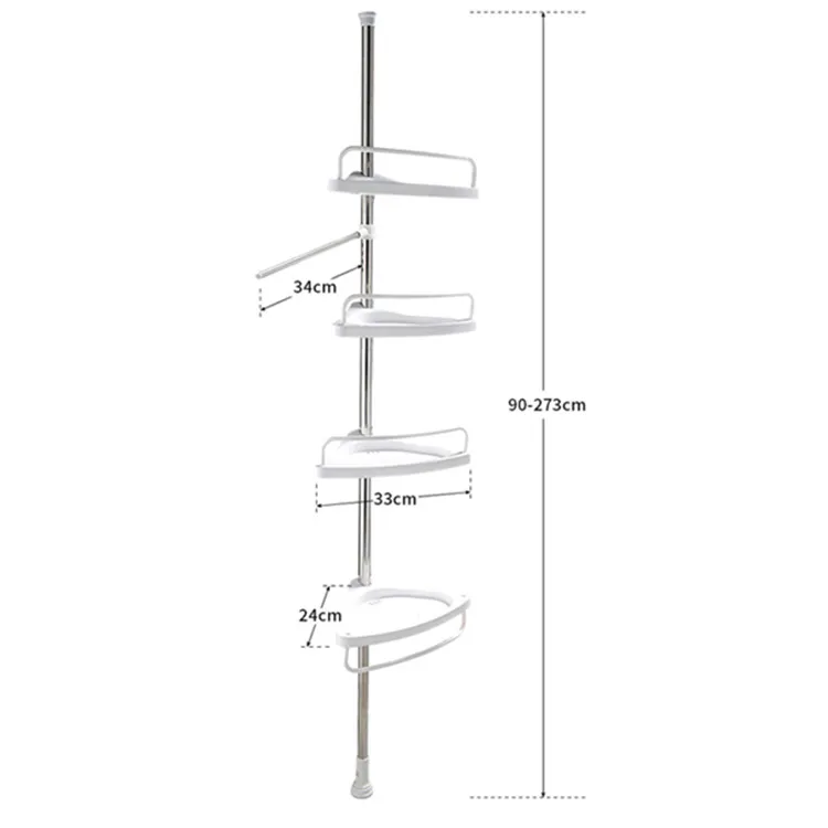 Organizeaza-ti baia eficient cu etajera de colt, ideala pentru dus sau coltul baii, mai ales in spatii mici. Cu un design telescopic si montaj vertical reglabil intre 100 si 260 cm, aceasta etajera ofera solutia perfecta pentru depozitarea produselor de igiena si accesoriilor de baie.