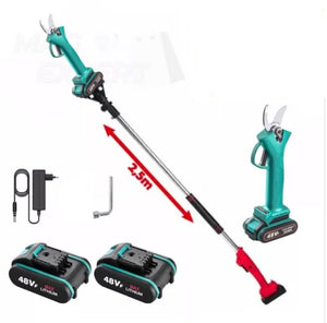 Foarfeca este potrivita pentru profesionisti in viticultura si pomicultura, dar si pentru uz casnic in gradina sau livezi. Bratul extensibil din otel inoxidabil de pana la 2,5 metri permite accesul la ramuri aflate la inaltime, facilitand toaletarea pomilor si a arbustilor fara efort. Eficienta de taiere este de 3-5 ori mai mare decat a unei foarfeci obisnuite, iar timpul de utilizare continua poate ajunge pana la 4 ore, cu un timp de incarcare de aproximativ 2 ore.