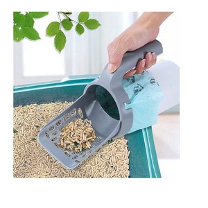 Lopatica pentru litiera pisicii, cu cos colector si 120 saci inclusi, gri