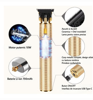 Masina de tuns USB, ergonomica, aurie/neagra, cu 4 capete