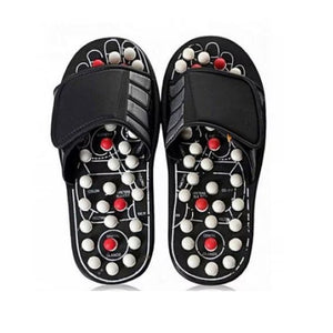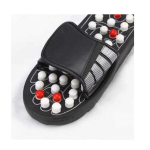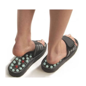 Papucii de reflexoterapie cu arcuri de masaj sunt conceputi conform principiilor medicinei traditionale chineze, stimuland punctele reflexogene de pe talpa piciorului. Acestia au 82 de arcuri suspendate, distribuite strategic pe puncte de acupunctura, care activeaza circulatia sanguina, reduc tensiunea si sustin relaxarea corpului prin simplul mers pe jos.