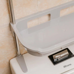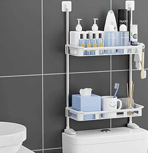 Raftul de depozitare cu 2 polite, destinat amplasarii deasupra bazinului de WC, este solutia ideala pentru a crea spatii suplimentare de depozitare intr-o baie supraaglomerata sau intr-o spalatorie. Acest organizator practic utilizeaza spatiul nefolosit de deasupra toaletei, oferind loc pentru detergenti lichizi sau solizi, sampon, gel de dus si alte produse de uz zilnic.