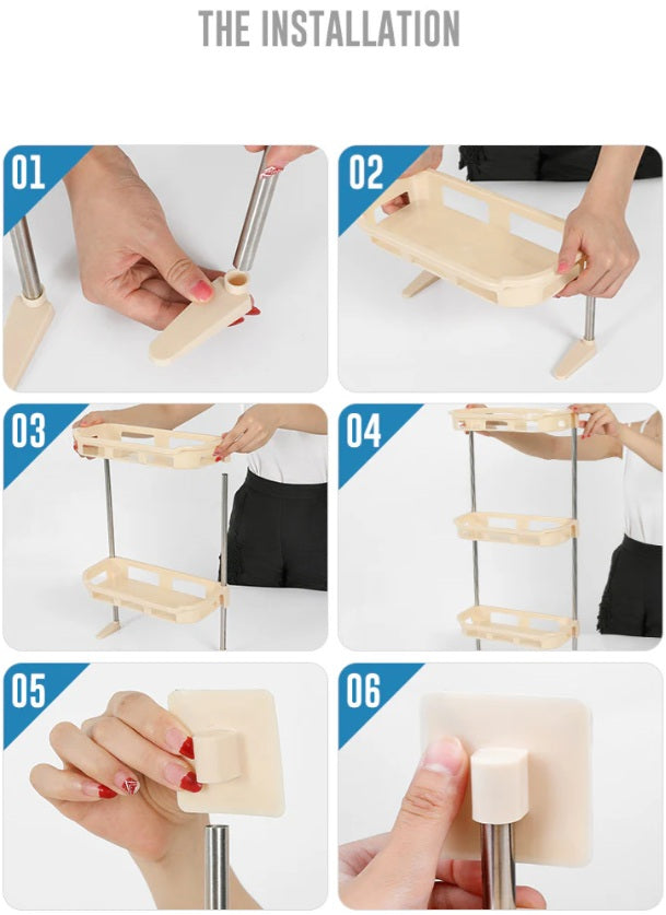 Fabricat dintr-un cadru durabil si accesorii solide, raftul este stabil si rezistent in timp. Montajul este simplu si rapid, fiind insotit de instructiuni detaliate incluse in pachet. Designul sau compact si eficient va ajuta sa mentineti baia sau spalatoria ordonata, maximizand spatiul disponibil.