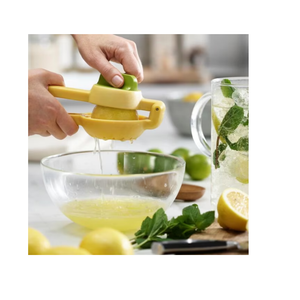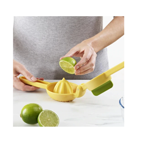 Acest storcator manual pentru citrice este conceput pentru a face stoarcerea lamailor si lime-urilor usoara si eficienta. Fabricat din aluminiu rezistent, storcatorul are un design cu dubla actiune, care permite stoarcerea completa a fructelor intr-o singura miscare. Manerele ergonomice nu solicita mana sau incheietura, iar capcanele integrate pentru seminte si pulpa asigura un suc curat fara impuritati. Este usor de curatat si poate fi spalat manual sau in masina de spalat vase.