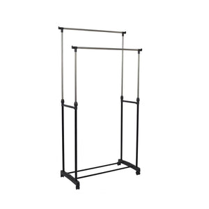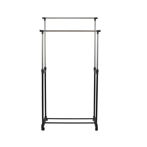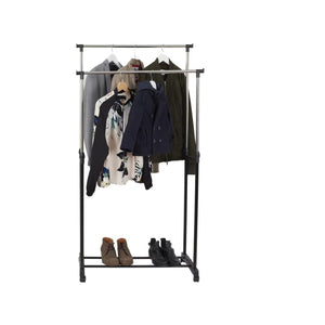 Suport Haine Dublu cu Spatiu pentru Pantofi, Metalic, cu Roti, 80x43x160 cm