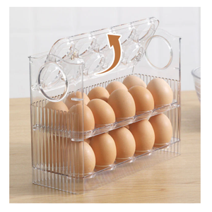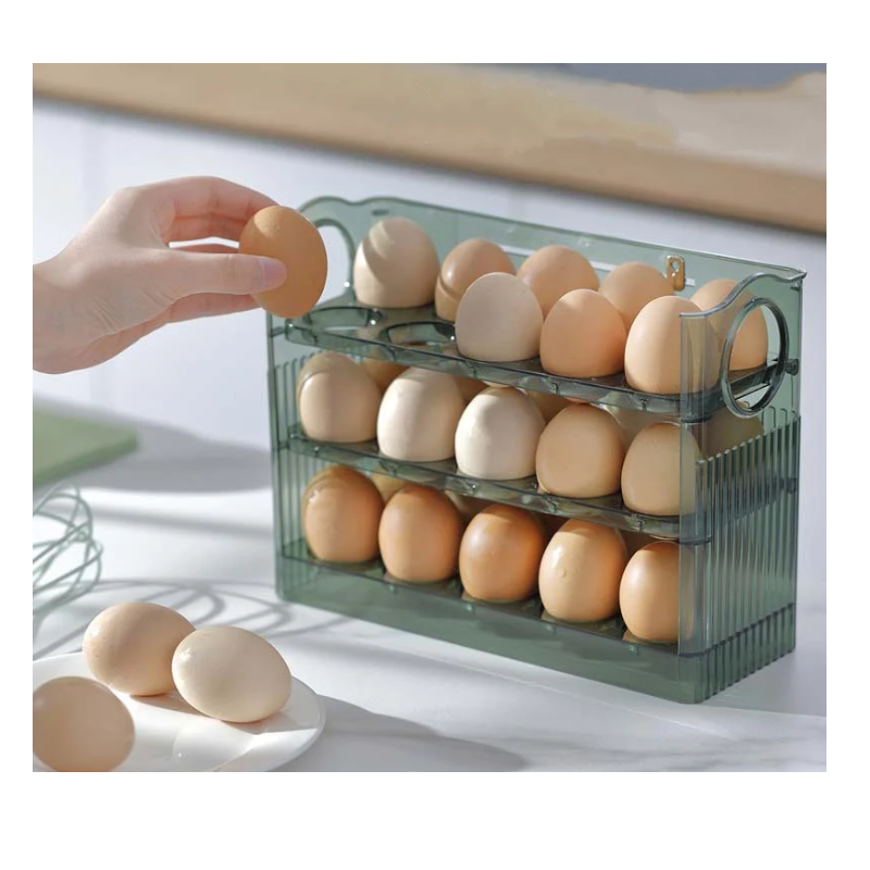Suport organizator oua pentru frigider, 30 bucati, flip 3 straturi, transparent