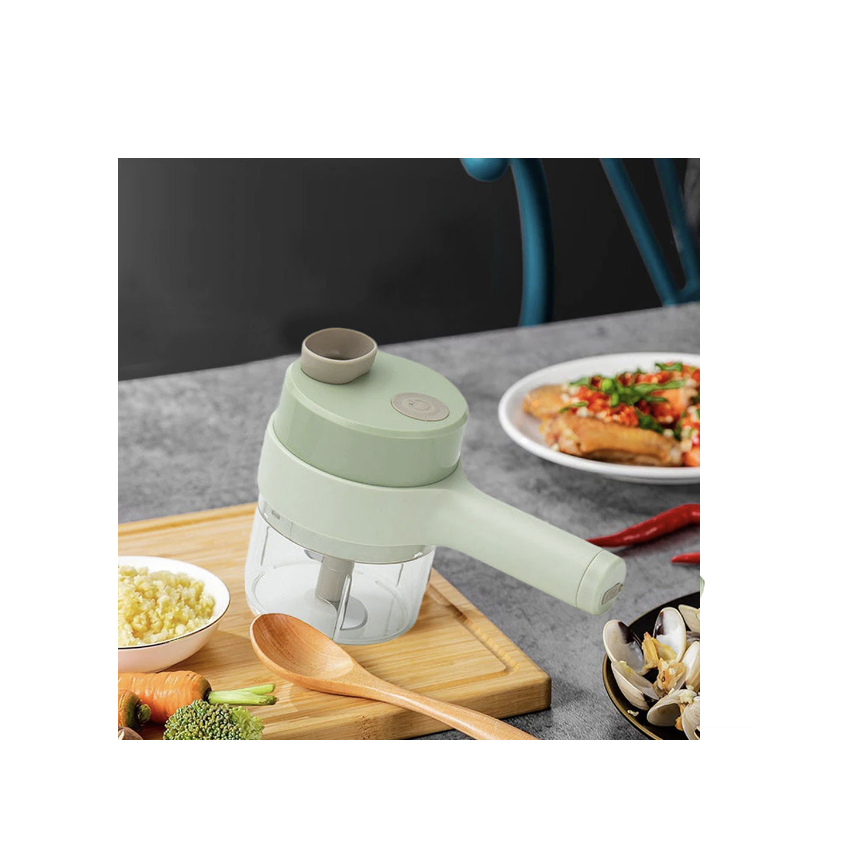 Tocator electric multifunctional pentru bucatarie, 2 boluri, 2 lame, curatator legume, auto-curatare, incarcare USB