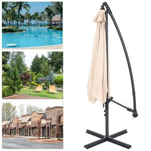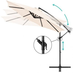 Bucura-te de vara intr-un mod relaxant cu umbrela suspendata pentru gradina, terasa sau balcon. Designul mediteranean aduce umbra placuta si protectie UV datorita materialului din poliester. Cadrul si piciorul metalic asigura stabilitate, iar manivela manuala permite deschiderea usoara si reglarea unghiului pentru umbrire optima. Diametru 5 m, greutate 10,6 kg, pachet complet cu talpi metalice, suruburi, saibe si cheie hexagonala pentru montaj simplu. Ideala pentru gradini, terase sau zone de relaxare la mare.